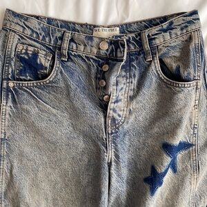 A special shadow patch "STARS" edition of the popular Lucky Barrel style jeans from Free People. SOLD OUT immediately and highly sought after print!