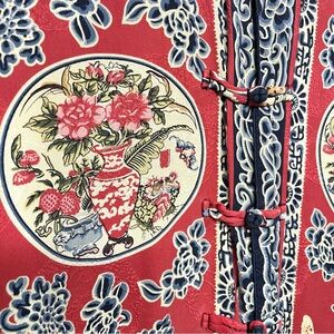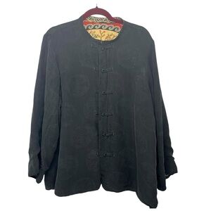Citron Santa Monica Silk Red Asian Reversible Button Front Jacket 2X