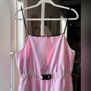 This onesie brings together hiker tech and a flattering silhouette, featuring a sleek, nylon fabrication and unique bungee bust detail, unique bungee straps with a flirty open back and elasticated waist with buckle closure.