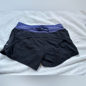 LULULEMON Speed up 4" Black with Purple Waist Band Shorts