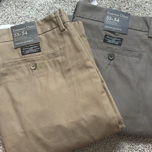 Two pairs of Banana Republic Emerson Chino khaki pants. Size 33 waist, 34 length. One pair tan, the other pair grey. Brand new with the tags on.