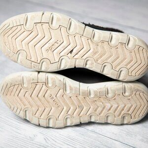 Improved fit with shearling detail, EVA cushioning, and 100g insulation. Leather upper and rubber sole provide grip for slick streets.