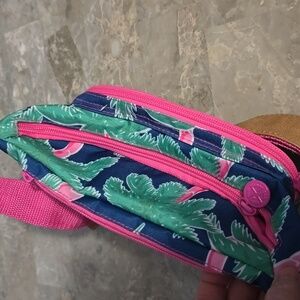 Excellent condition Simply Southern Collections tropical palm print belt bag or fanny pack. Colors are blue, green and pink. The bag is fabric and nylon, with faux leather trim on the bag and belt strap.