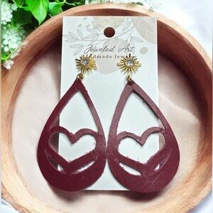 Jeweled Art Metallic Wavy Connected Hoops Hand Painted Wood Earrings NEW
