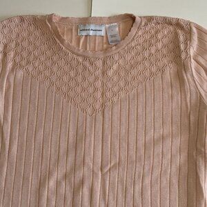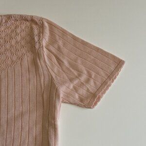 Vtg 2 Pc Sweater Pant Suit Set Peach Short Slv Shirt Top Outfit Dress USA Large