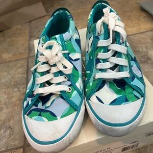 Stylish sneakers with a bold floral design. Features a mix of black and pink patterns. Perfect for casual outings.