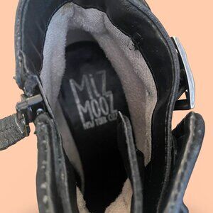 Miz Mooz short bootie made from genuine leather. Round toe, two side buckle snad zipper closure.