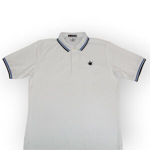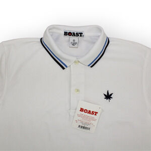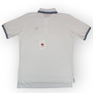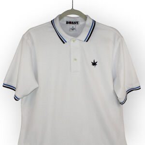 BOAST (M) Tipped Pique Polo White-Navy-Carolina Blue Cotton~Spandex Tennis