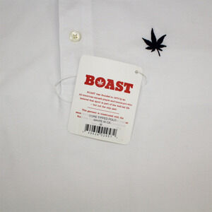 Menswear icon - made in Peru - pre-shrunk - external placket - taped seams - embroidered leaf logo on left chest - triple bartack at side vent - tennis tail hem