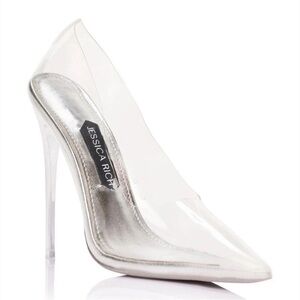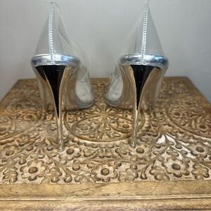 Elegant clear stiletto heels. Sleek and modern design. Perfect for any occasion.