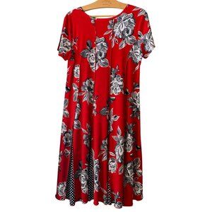 Sami & Jo Womens Art to wear Unique Glam Red Floral & Polka Dot Fit & Flare Dres
