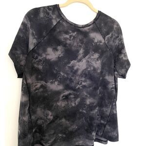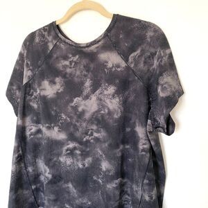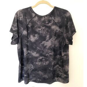 Athleta Black and Gray Ultimate Train Printed Short Sleeve Lightweight Tee Sz 1X