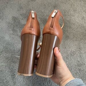 NWOT Jessica Simpson Saveria Brown Pleather Chunky Myscene Platform Heels Size10
