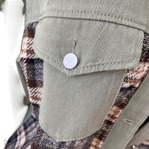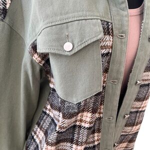 Sage green and brown/black plaid lightweight chore coat
