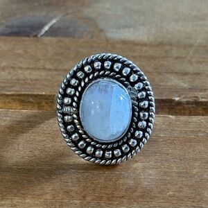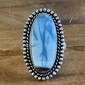 Women Size 10 Ring Silver 925 Jewelry 925 Blue Chalcedony Large Gemstone Native