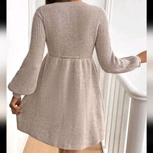 Women's Casual Simple Shell Trim Drawstring Waist V-Neck Lantern Sleeve Sweater