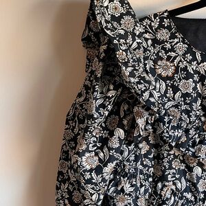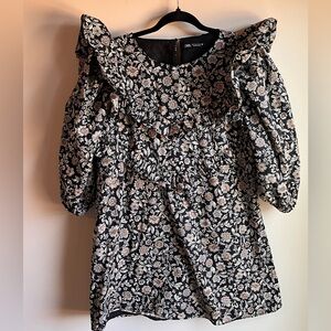 Super fun puff sleeve dress by Zara, lined and full of volume! This has a nice black yellow and white floral print.
