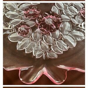 Mikasa Rosella Vintage Walther Crystal Cake Plate Floral Pink /Red Frosted 14”