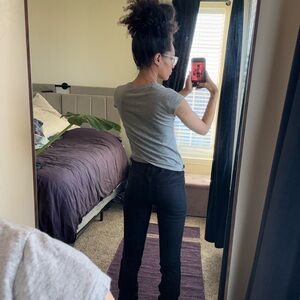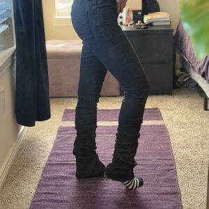 Chic super dark blueish black Ruched stacked Jeans