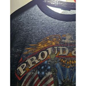Keywords: usa, patriotic, eagle, statue of liberty, american flag, vintage 1990, proud and free, graphic tee, americana, fourth of july, independence day, retro