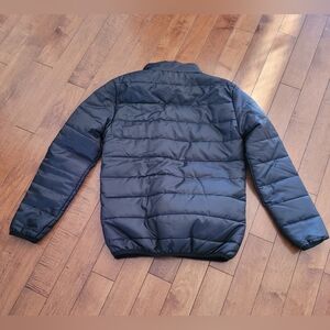 Coat Light Puffy for Spring or Fall. This is a Chinese copy of the North Face . This is the NoFace .. 😉 Size more a small for men or medium women.