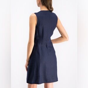 Excellent preowned condition womens size 2. Navy blue 100% linen sleeveless shift dress. Button front with stylish front pockets.