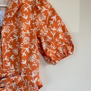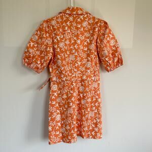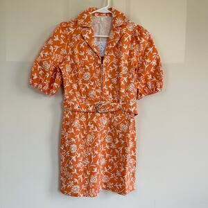 BaeVely Denim Mini Shirt Dress Preppy Belted Short Sleeve Floral Orange SMALL