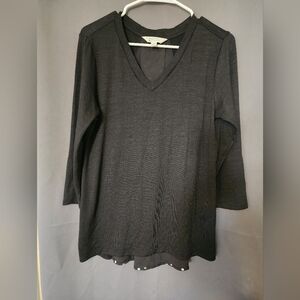 Market and Spruce Haileah Black with Silver Polka-dots, Mix Media Knit Top, V Neck, Silver Polka-dots.
