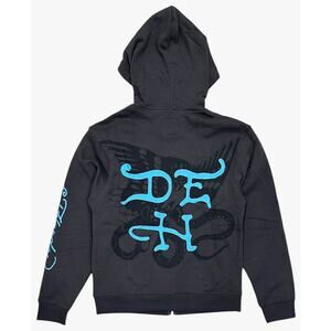 Ed Hardy Men's Hoodie Panther Snake Fleece Full Zip Sweatshirt in Charcoal