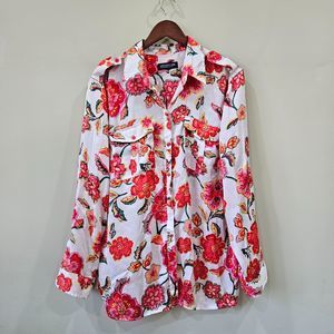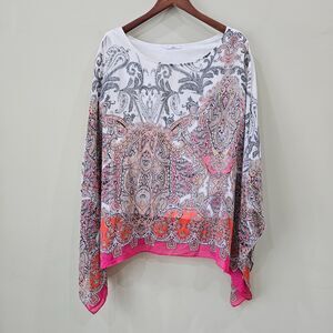 Jones New York Womens Silky Popover Top Multicolor Embroidered Artsy Bohemian