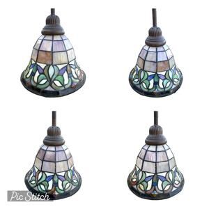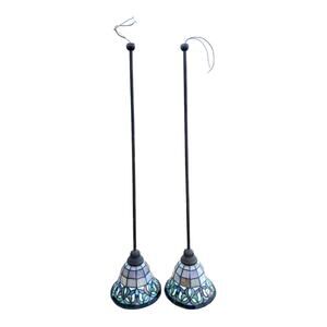 Portfolio Tiffany Style Stained Glass Art Fixtures Bronze x2 Pendant Lights