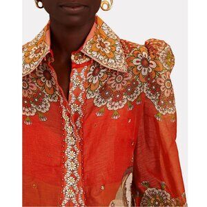 Zimmermann Kaleidoscope Linen & Silk Blend Shirt Blouse in Aries Size AU 1