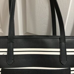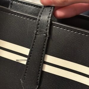 Kate Spade black and white tote. Front pocket and 3 inner pockets. Wear on the straps (see photos).