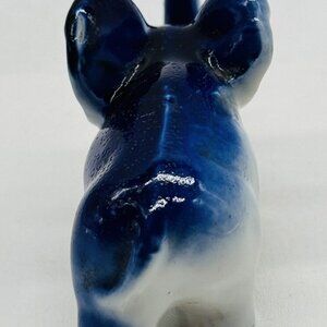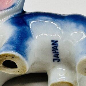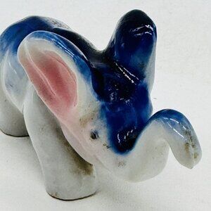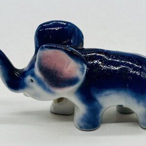 Vintage Blue Porcelain Elephant Figurine Trunk Up Japan Good Luck 3.5 inch
