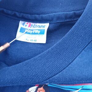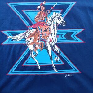 Relive the vibrant 90s with this vintage single stitch t-shirt. Featuring a southwestern chief and horse design, it's a true collectible piece. Crafted by Hanes in the USA, this XL tee offers comfort and style for any vintage enthusiast.