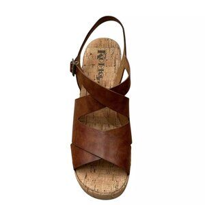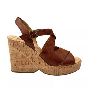 Korks Brigitte Women's Wedge Platform Sandal Size 7 Brown/Tan Open Toe Style