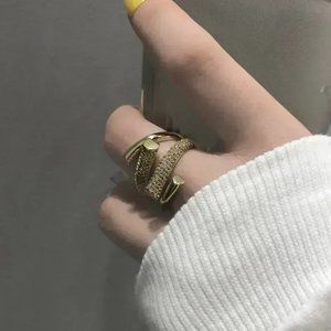 3/$35 Copper Ring Elegant Swirl Cubic Zirconia CZ Gold Diamond Crystal Jewelry