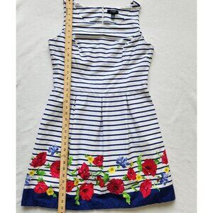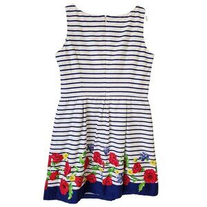 Chaps Blue & White Striped Floral Dress Poppy Sleeveless Nautical Boho Cute 12