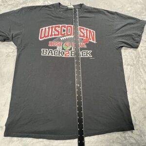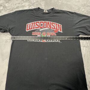 Show your support for the Wisconsin Badgers with this officially licensed Rose Bowl shirt. The black unisex shirt is perfect for any football fan and features the team's iconic logo. The shirt is made of high-quality materials and is designed to be comfortable and durable. It's perfect for wearing to the game or for everyday wear. The shirt is available in size XL and is a great addition to any collection of fan apparel. Get yours today and show your love for the Wisconsin Badgers!