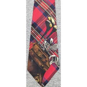 POLO RALPH LAUREN Mens Tie - Red Plaid, Golf Motiff, Hand Made, 100% Silk