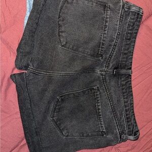 Trendy high-waisted denim shorts. Dark wash denim on the front black denim on the back. Very unique! Features multi-button details and classic pockets. Perfect for casual outings.