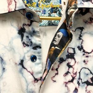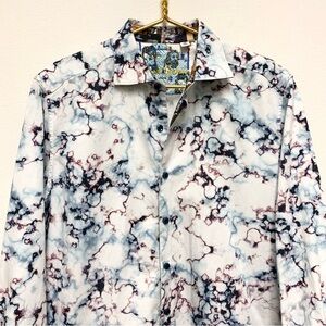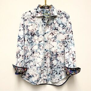 Robert Graham Marble Artwork Print Long Sleeve Button Shirt Classic Fit Size M