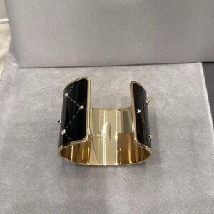 Valentino cuff in black enamel with gold inlay and rockstuds accent. Size small.