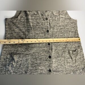 LOGO Lori Goldstein women’s lace trim button up v-neck sweater vest. Size large. Gray. Good used condition. No holes or stains. Extra button included by care label.