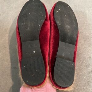 CATHERINE Catherine Malandrino US Women’s Color: Ruby Burgundy Furrow Style Velvet Slip-on Mules Faux Fur Footbed interior lined Soft velvet, with a classic double looped bow on top Rounded “loafer” style toe 10" heel to toe