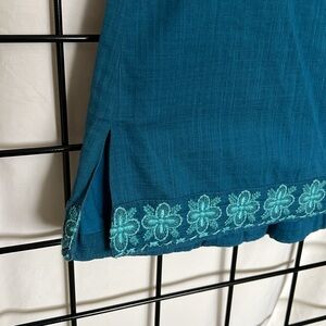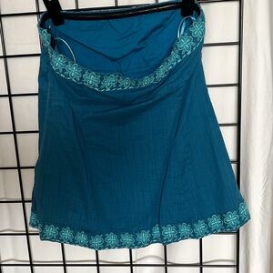 J Crew Turquoise Strapless Top Size 2 . Beautiful strapless top with embroidered detail on hems. Side zipper. Perfect condition. Smoke rehome.