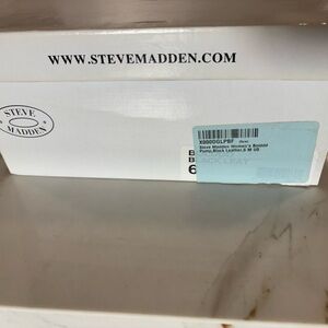 Make a statement with these stunning Steve Madden platform heels! The black leather upper material is adorned with gold studs, giving these shoes a touch of glamour. The pointed toe and ultra-high stiletto heel style make them perfect for a night out or any occasion where you want to add a touch of sophistication. The slip-on closure ensures a comfortable fit, while the solid pattern and metal theme make them a versatile addition to any wardrobe. These women's size 6 heels are sure to turn heads wherever you go.