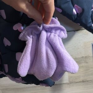 NWT navy with purple hearts lined with faux fur. Includes matching purple fleece mittens. Size 18 months