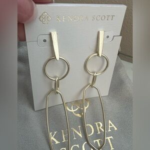 🎉Kendra Scott gold earrings 🎉 Nalani linear 3” long and very light weight on the ears. Current pics as of today (1-25)…. Any questions feel free to ask.