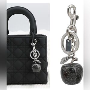 🍎🍎Elegant black apple bag charm. Features silver-tone hardware. Perfect for accessorizing.